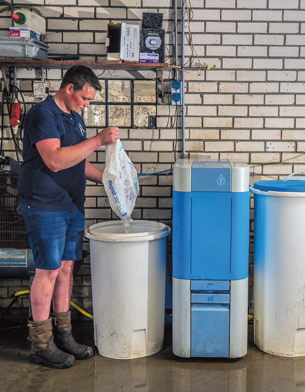 Na een week was het verschil al te zien in de waterbakken in de stal. ‘Het water werd schoner’, blikt De Groot terug. Gaandeweg werd het water steeds helderder en frisser. Dat overtuigde hem. ‘In het half jaar dat de installatie hier op proef stond, werd ik steeds enthousiaster. Vooral in de zomer was het verschil goed te merken, het water stonk vaak een beetje, nu is het altijd schoon en fris.’