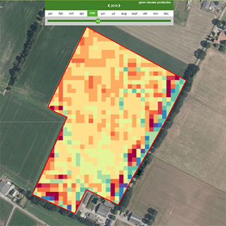 De bijgroeikaart geeft weer hoeveel biomassa er bij is gekomen in een periode. Dit zijn de verschillen tussen twee biomassa-indexen. Je ziet dus gelijk wat resultaat is van de afgelopen periode. Verschoore legt uit: ‘Als je ziet dat er plekken zijn die een trage opstart hebben gehad maar toch wel snel bijgroeien kun je plaatselijke maatregelen treffen zoals extra stikstof of Phytoftora-preventie.’